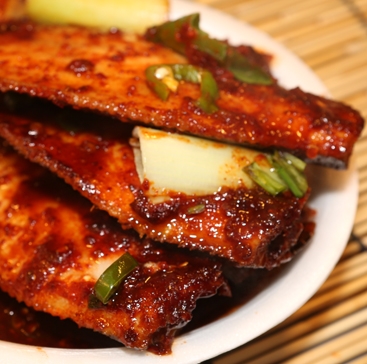- 간장, 설탕, 마늘, 생강을 고루 섞은 양념장을 가자미 위에 올려 줍니다.