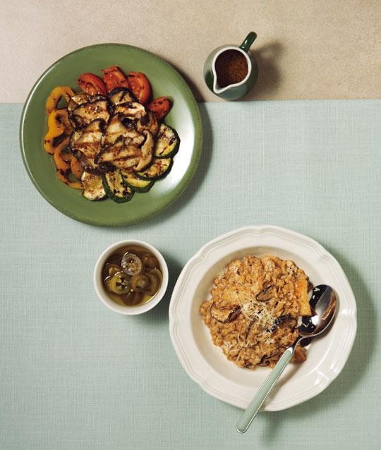 두툼한 철판에 올리브 오일을 두르고 가지를 한 겹씩 올려주세요. 천천히 앞뒤로 뒤집으면서 노릇하게 익힙니다. 가지가 부드럽고 적당히 익으면 철판에서 꺼내어 준비해 둡니다.