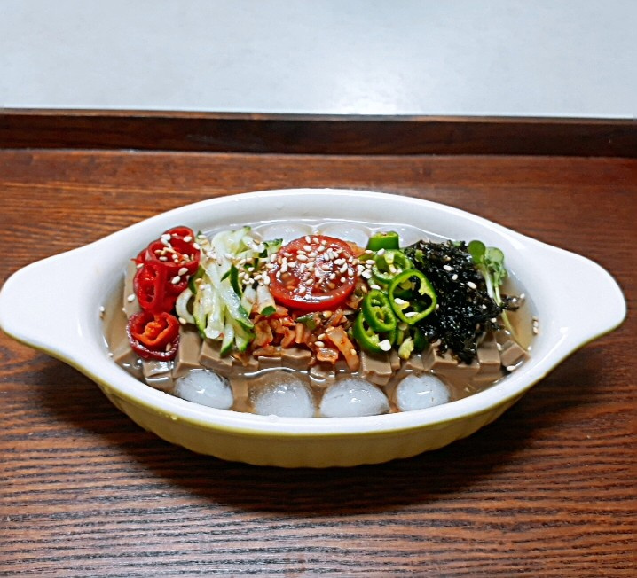 묵사발은 차가운 상태에서 먹는 것이 가장 맛있습니다. 묵과 야채가 잘 버무려진 상태에서 한 입에 먹으면 신선하고 고소한 맛을 느낄 수 있습니다. - 묵을 불리는 시간은 얼마나 되어야 하나요?