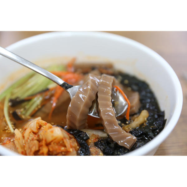 - 묵사발 완성: 만들어진 묵과 야채 위에 소스를 뿌려 마무리합니다. 센스있게 소스를 골고루 뿌려주면 완성입니다. 특별한 손짓으로 묵사발을 더욱 특별하게 만들어보세요~!