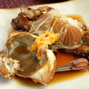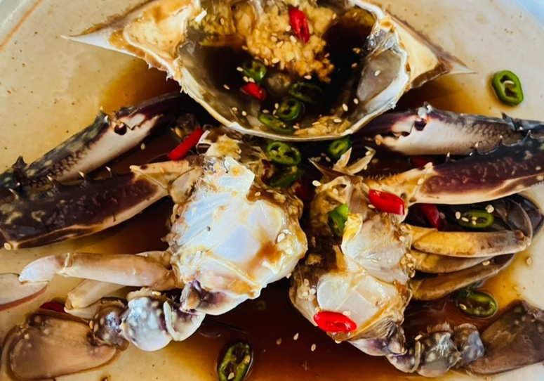 - 깨끗한 접시에 꽃게를 하나씩 올리고 간장을 살짝 뿌립니다.