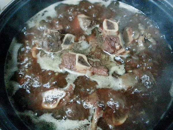 처음부터 강불에서 끓이지 말고, 중간중간 불 조절을 통해 고기가 부드럽게 익을 수 있도록 해주세요. 중불에서 은은하게 끓이는 것이 핵심!