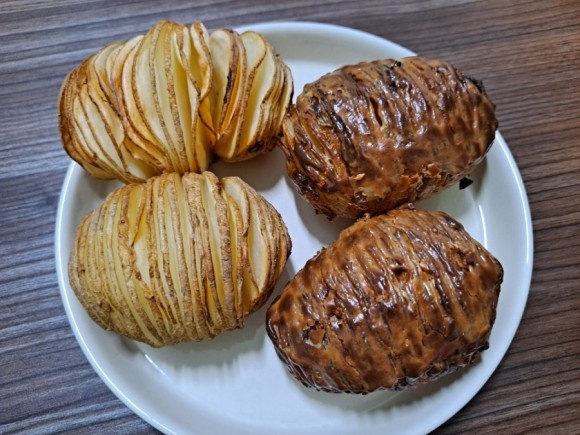 에어프라이어로 구운 감자는 기름을 사용하지 않아 칼로리가 낮고, 담백한 맛을 유지할 수 있습니다. 에어프라이어의 고온 공기 순환 기술 덕분에 감자가 겉은 바삭하고 속은 부드럽게 익습니다. 건강한 식단을 유지하면서 맛있는 간식을 즐기기에 적합합니다. 😋