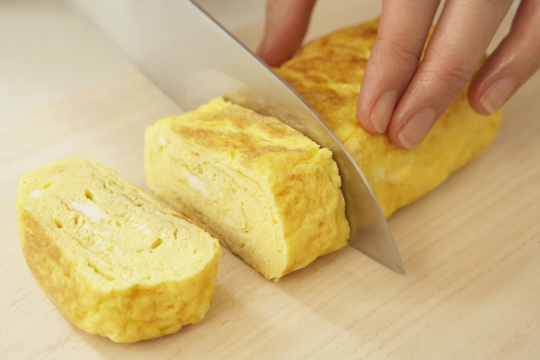 계란말이를 먹을 때는 한 입 크기로 썰어 먹으면 더욱 편하게 즐길 수 있어요. 작은 크기로 썰어 입에 넣으면 그 부드러운 식감이 그대로 느껴져서 더 맛있어요~! ^^