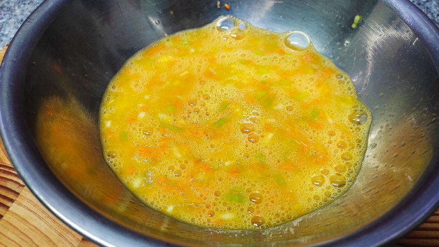 볼에 계란을 깨뜨려 넣고, 젓가락으로 공기가 들어가지 않도록 가볍게 푸는 것이 중요합니다. 너무 강하게 휘저으면 공기방울이 많이 생겨 계란말이 식감이 거칠어질 수 있어요! 계란 흰자와 노른자가 완전히 섞일 때까지 약 1분 정도 푸는 것이 적당합니다 ^^