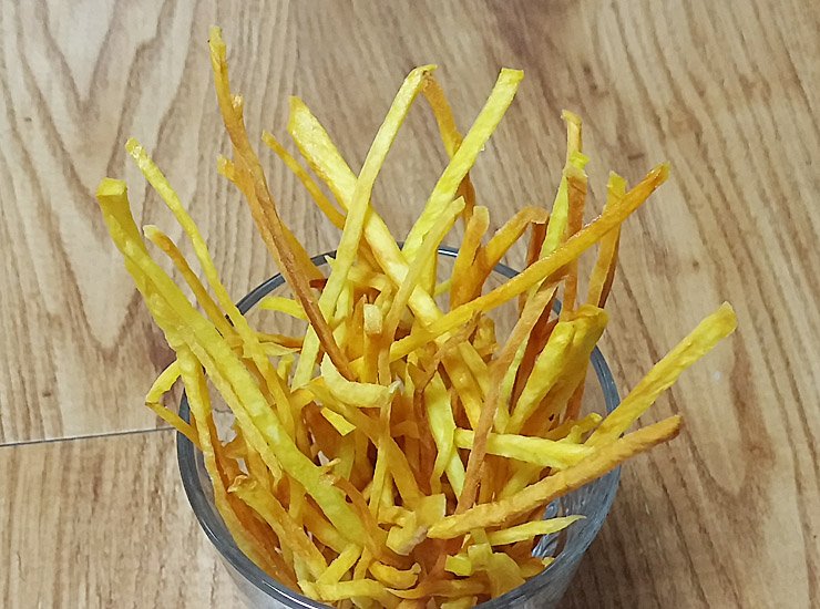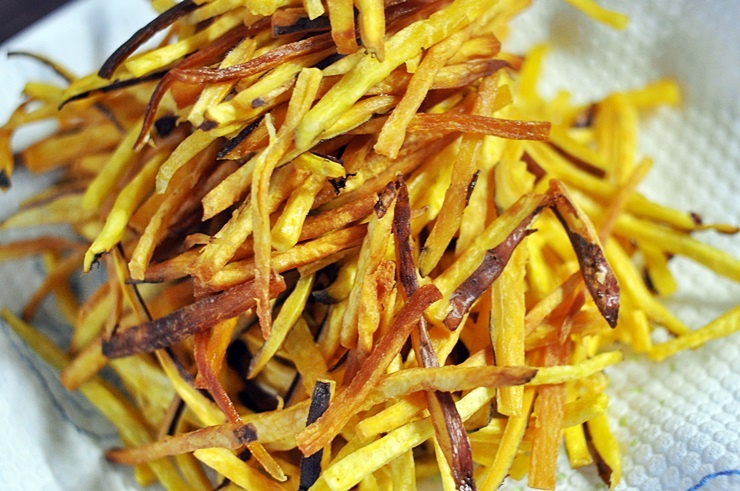 - 고구마를 얇게 자를수록 더 바삭해집니다~!