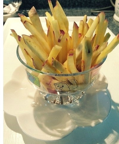 - 접시에 고구마스틱을 깔끔하게 정리하여 담아보세요.