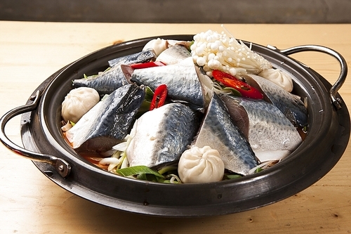 그 후, 고등어를 넣고 김치 양념과 함께 조리합니다. 중불에서 약 10분 정도 더 끓여주면 고등어가 익어 고기가 윤기를 내며 김치와 어우러진 맛이 돋보입니다.