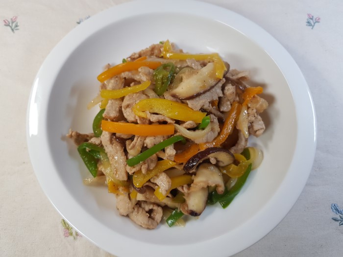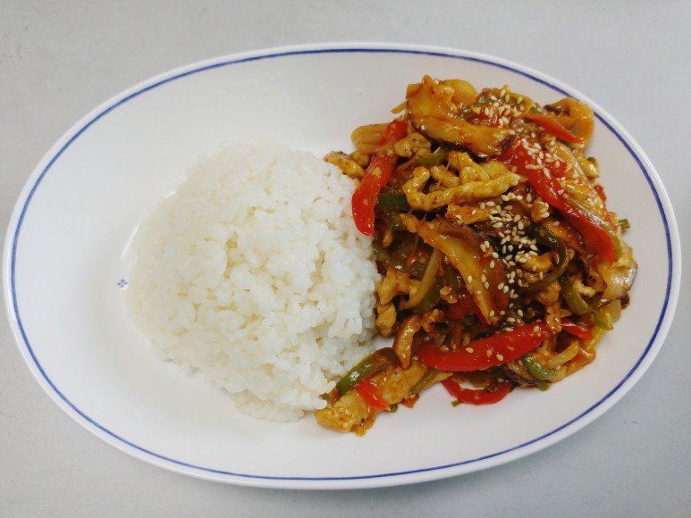 돼지고기와 채소가 어우러져 고단백, 저지방 식단으로 영양 균형이 우수한 편입니다. 특히 피망과 양파는 비타민 C가 풍부해 면역력 강화에 도움을 줍니다.