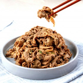 1. 팬에 식용유를 두르고 양념이 베인 소고기를 넣어 중약불에서 볶아주세요.