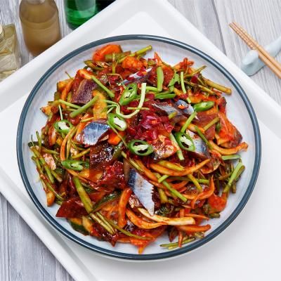 양념을 잘 섞은 후, 준비한 채소인 양파와 청양고추를 과메기와 함께 넣고 가볍게 섞어주세요. 이때 채소가 과메기와 잘 어울려야 하므로 너무 세게 섞지 않도록 주의해야 해요! ^^