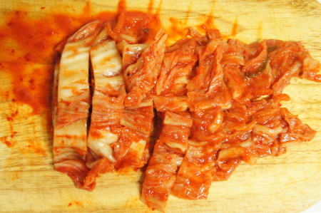 1️⃣ 김치를 먹기 좋은 크기로 잘게 썰어주세요. 묵은지가 있다면 더욱 좋아요~! 😊