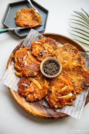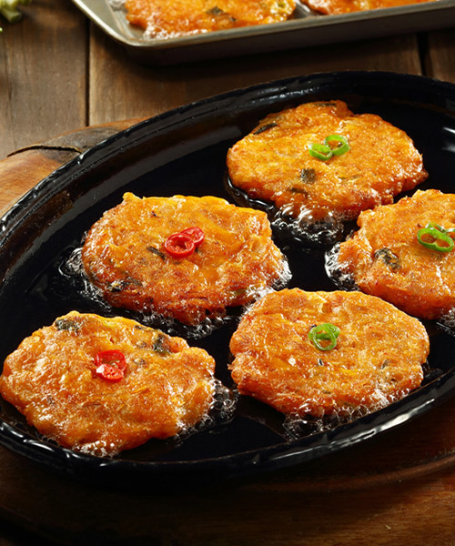펜에 식용유를 두르고, 중불에서 달군 후, 반죽을 한 숟가락씩 떠서 전 모양으로 눌러 넣어줍니다. 양쪽 면이 고급 튀길 때까지 굽습니다. 바삭하게 구워내어야 맛이 더욱 좋습니다!