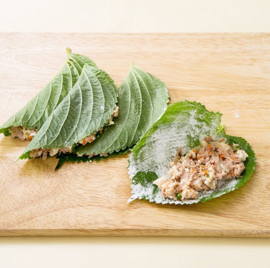 단계 1: 깻잎은 신선하고 깨끗하게 씻은 뒤, 물기를 제거합니다. 잎 사이에 소금을 약간씩 뿌려 각 잎이 씹는 맛이 돋게 합니다.