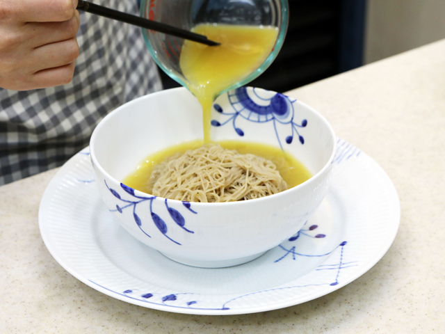 육수는 약 1시간 이상 끓여야 진한 맛이 우러납니다. 중불에서 끓이며, 끓는 과정에서 맛을 보며 간을 맞춰주세요! 육수의 맛이 깊어질수록 냉면이 더욱 맛있어져요! ^^