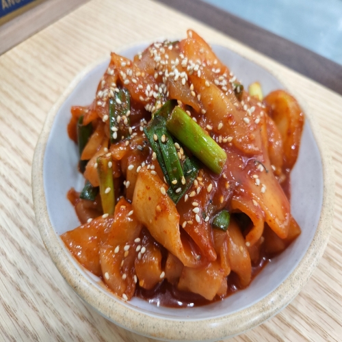 - 마지막으로 참깨를 뿌려 완성합니다: 불을 끄고 참깨를 뿌려주면 고소한 향이 더해져 더욱 맛있는 노각무침이 완성됩니다.