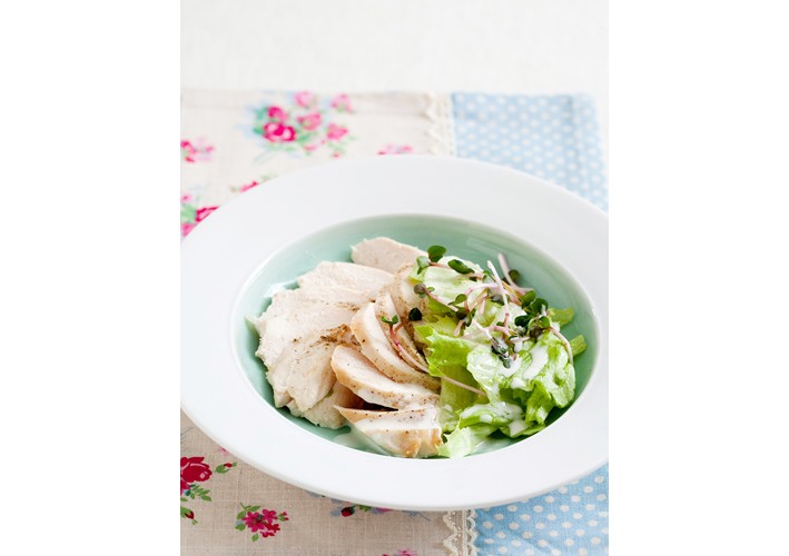 - 찢어놓은 닭가슴살을 채소 위에 보기 좋게 올려주세요. 🐔
