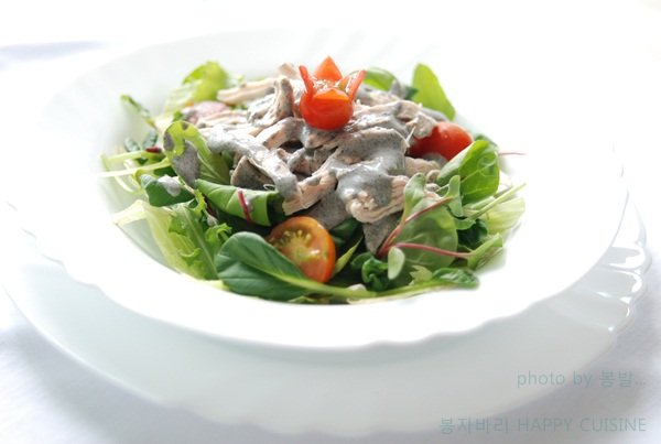 이제 샐러드가 거의 완성 단계에 도달했습니다! 간단하지만 깔끔하고 건강한 요리가 완성되어 가는 순간입니다. ^^