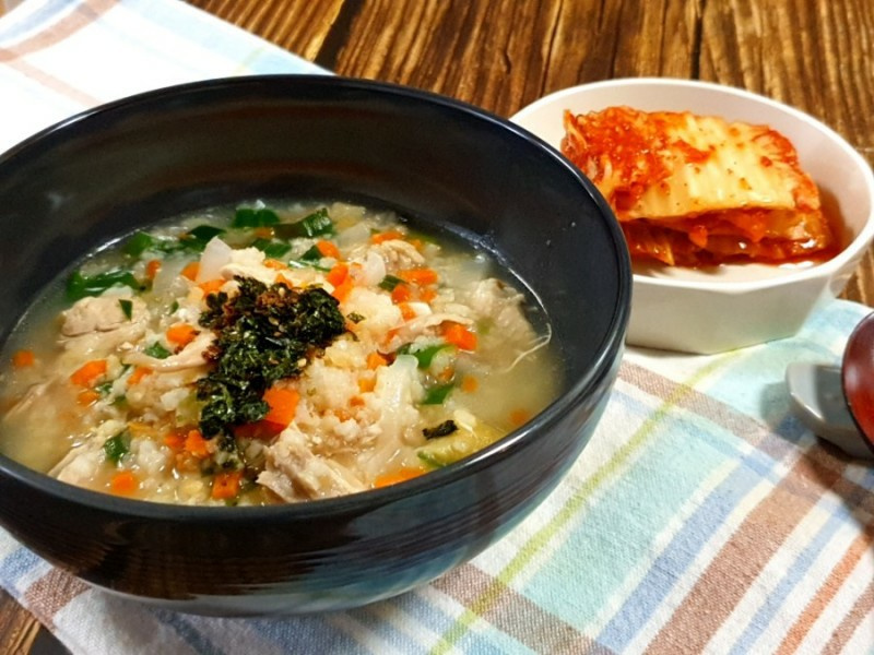 - 김가루: 김은 닭죽과 잘 어울리며 고소한 맛을 더합니다. #김을 조금 뿌리면 더욱 맛있어요!