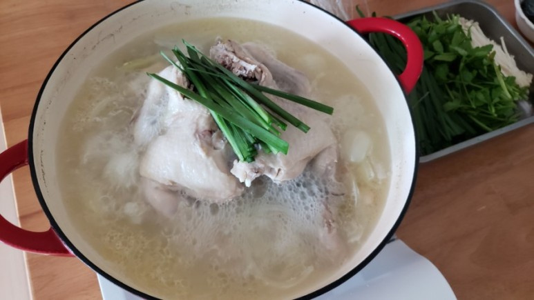 닭을 끓일 때 가장 중요한 점은 바로 국물의 진한 맛을 내는 것입니다. 먼저, 큰 냄비에 닭 한 마리를 넣고 물을 부어주세요. 물의 양은 닭이 충분히 잠길 정도로 넣어야 해요. 그 후, 마늘, 생강, 대파를 넣고 끓여줍니다. 이때 불은 중불로 조절하고, 물이 끓기 시작하면 거품을 제거해 주세요.~~