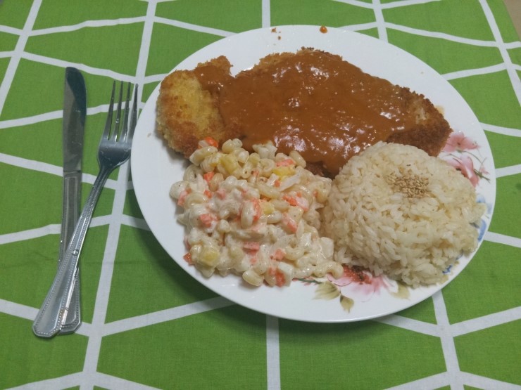 돈까스는 밥과 함께 먹으면 정말 맛있죠! :) 밥 한 공기와 함께 곁들여 드시면 완벽한 한 끼가 되어요. 그리고 돈까스를 먹을 때는 소스를 가득 뿌려서 드세요~!!