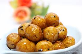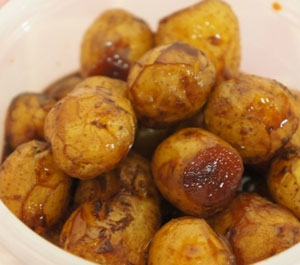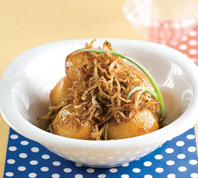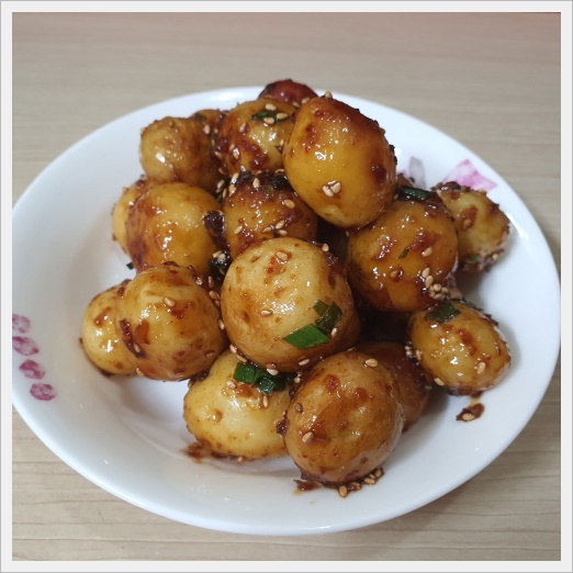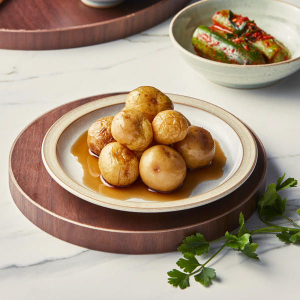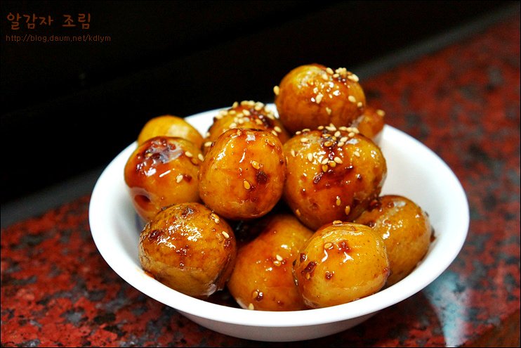 알감자조림은 주식과 약재로 널리 알려진 알감자를 이용하여 만들어집니다. 알감자는 사람들에게 새콤한 맛을 줍니다. 조림의 농축된 간장 양념과 잘 어울리기 때문에 이 요리는 많은 사람들에게 사랑받고 있습니다.