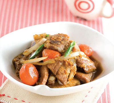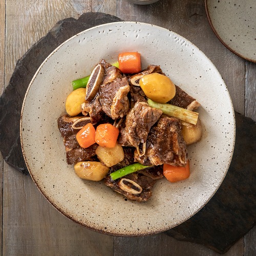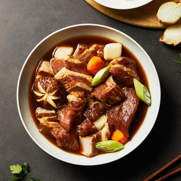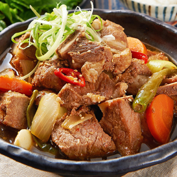 - 조리: 냄비에 준비한 돼지갈비와 야채를 넣고 간장 소스를 부어 끓입니다. 중불에서 약 30분 정도 끓여줍니다.