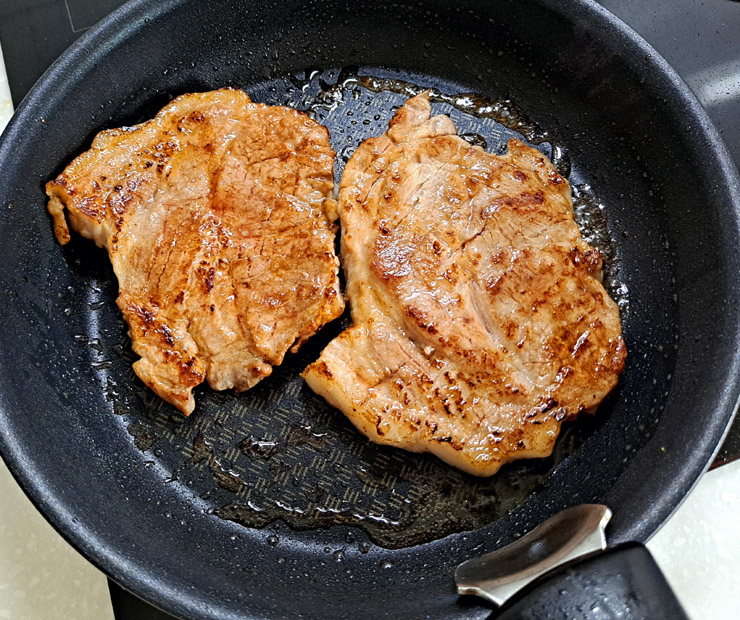 각 면을 약 4-5분씩 구워주세요. 고기가 고르게 익도록 중간에 뒤집어주는 것이 중요해요. 육즙이 풍부한 돼지목살스테이크 만들기를 완성하는 비결이랍니다! 😍👍