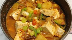 야채들이 어느 정도 익으면 두부를 넣고 살살 저어가며 끓여주세요. 두부는 너무 세게 저으면 부서질 수 있으니 부드럽게 다루는 것이 포인트입니다~!