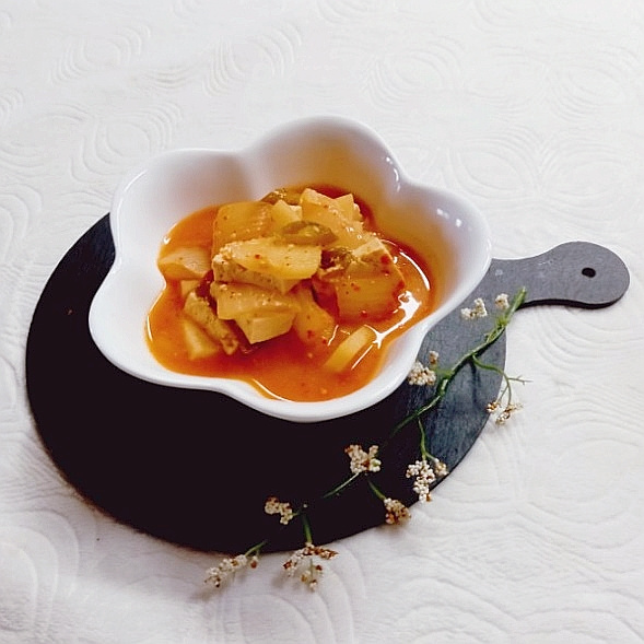 두부는 큼직하게 썰어 국물에 잘 어우러지도록 준비해 주세요. 두부를 너무 작게 썰면 부서질 수 있으니 주의하세요 :)