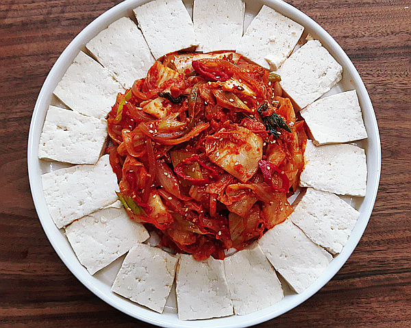 두부는 식물성 단백질(100g당 8g)과 칼슘이 풍부해 골다공증 예방에 좋습니다. 김치의 유산균(Lactobacillus kimchii)은 장 건강에 탁월하죠! 이 조합은 다이어트 식단으로도 최적입니다~?