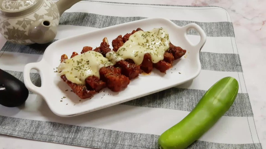 조리가 완료된 등갈비찜을 접시에 예쁘게 담아주세요. 시각적인 요소가 식욕을 자극하니까요! 이때, 통깨나 고춧가루로 장식하면 더욱 멋진 플레이팅이 완성됩니다! 😋