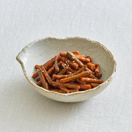 장아찌 소스가 고루 배어든 것을 확인하고, 맛을 조절해야 할 경우 간을 맞춥니다. 더 매콤하게 만들고 싶다면 고춧가루를 추가할 수 있습니다.
