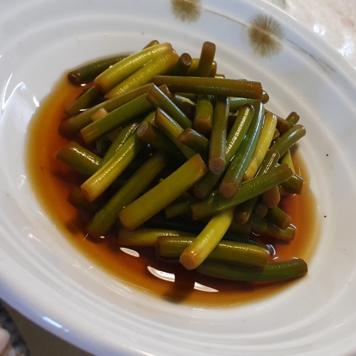 "마늘쫑 장아찌를 처음 만들어 봤는데, 집안에 뿌리는 짭짤한 향기 때문에 가족들이 다들 칭찬을 많이 해 주었어요. 다음에는 더 많이 만들어 두고 싶네요!"
