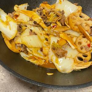 - 다진 마늘과 생강을 볶아 향을 낸 후, 마라 페이스트와 고추 가루를 넣어 더 볶습니다.