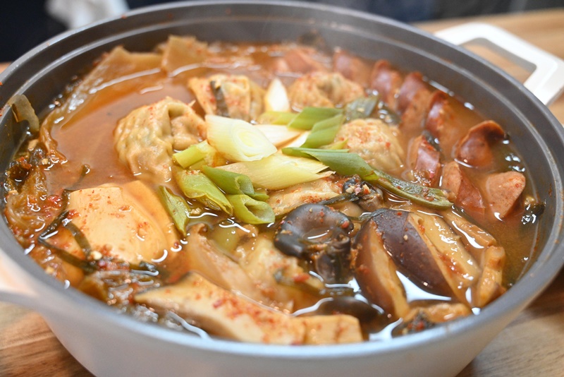- 완성과 제공: 만두 김치전골을 그릇에 담아 먹기 좋게 내어주면 완성입니다! 밥과 함께 먹으면 더욱 맛있습니다.