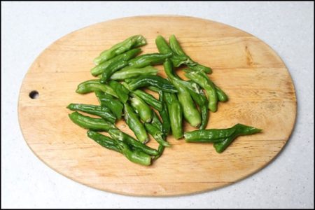 - 꽈리고추 준비: 꽈리고추를 깨끗이 씻고 물기를 제거한 뒤, 길게 썰어 준비합니다.