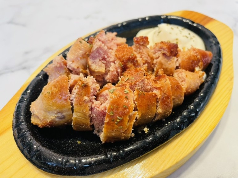 맛있는 명란젓 요리를 접시에 담아 식탁에 올려 가족과 함께 즐깁니다. 따뜻한 밥과 함께하는 것이 좋습니다!