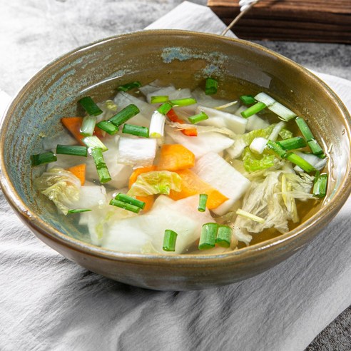 물김치는 소화를 촉진하고 식욕을 돋우는데 도움이 됩니다. 또한 배추에 함유된 식이섬유는 장 건강에 이로우며, 마늘과 생강의 향이 체내를 따뜻하게 만들어 겨울철에도 유용합니다.