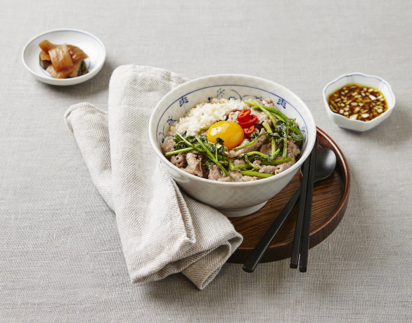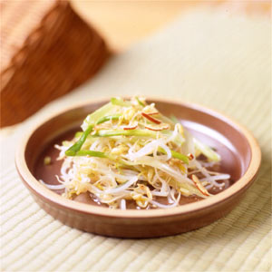 1. 완성된 미나리생채 무침을 접시에 담아주고, 테이블에 올려주세요.