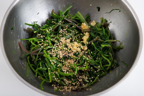 3. 섞은 양념에 미나리를 넣고 고루 버무린다.