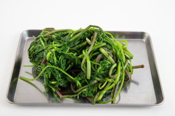 1. 미나리는 씻어서 물기를 제거한 후 굵게 다진다.