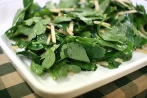 - 방풍나물을 흐르는 물에 헹궈주세요.: 데친 방풍나물을 찬물에 헹궈 물기를 제거해주세요.