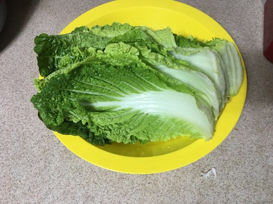 배추는 깨끗이 씻은 후, 적당한 크기로 썰어줍니다. 너무 작게 자르면 국물에서 금방 무르기 때문에, 적당한 크기로 자르는 것이 중요합니다. ^^