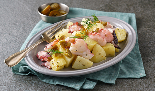 베이컨 감자 샐러드의 마무리와 서빙 방법은 다음과 같습니다: