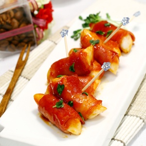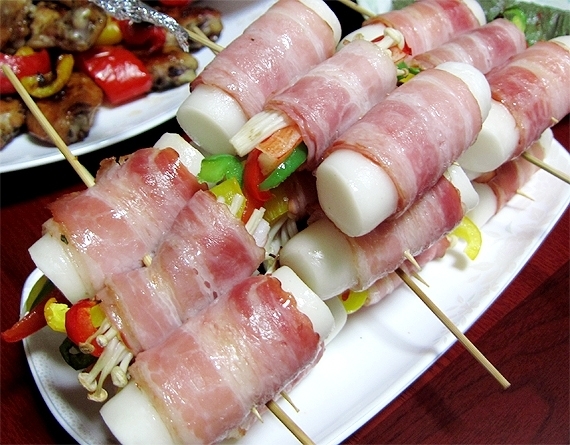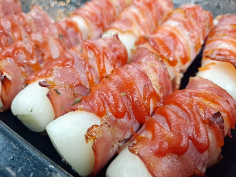 이렇게 간단한 조리 과정을 거치면 고소한 베이컨 떡말이가 완성됩니다!