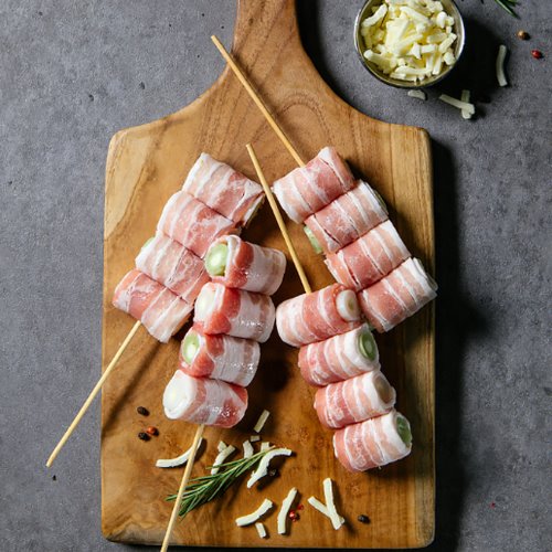 먼저, 떡과 베이컨을 준비합니다. 떡은 적당한 크기로 자릅니다. 베이컨은 기호에 따라 통째로 사용하거나 반으로 자를 수 있습니다. 대부분의 사람들은 베이컨을 반으로 잘라 사용하는 것을 선호합니다. 이렇게 하면 떡 안에 베이컨을 더 잘 싸서 떡말이를 만들 수 있습니다. 다음 단계로 넘어가기 전에 떡과 베이컨을 준비해 둡니다.