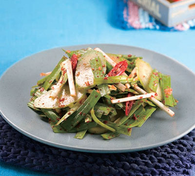 고춧가루의 양을 더 추가하거나, 거의 다 마친 후에 더 불려서 넣어보세요. 또는 고추장을 약간 섞어 넣어도 좋은 매운맛을 즐길 수 있습니다. - 부추무침의 영양가는 어떤가요?