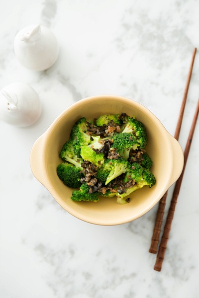 1. 브로콜리를 씻어주세요. 물기를 털어낸 후 꽃 부분과 줄기 부분을 분리하고 큼직하게 잘라주세요. 줄기 부분은 물에 살짝 데쳐 부드럽게 만듭니다.