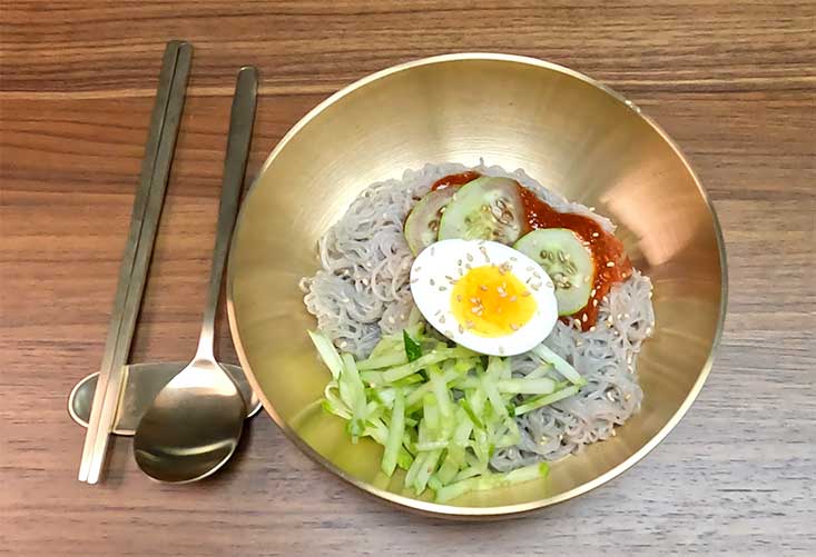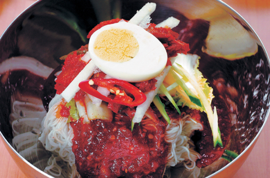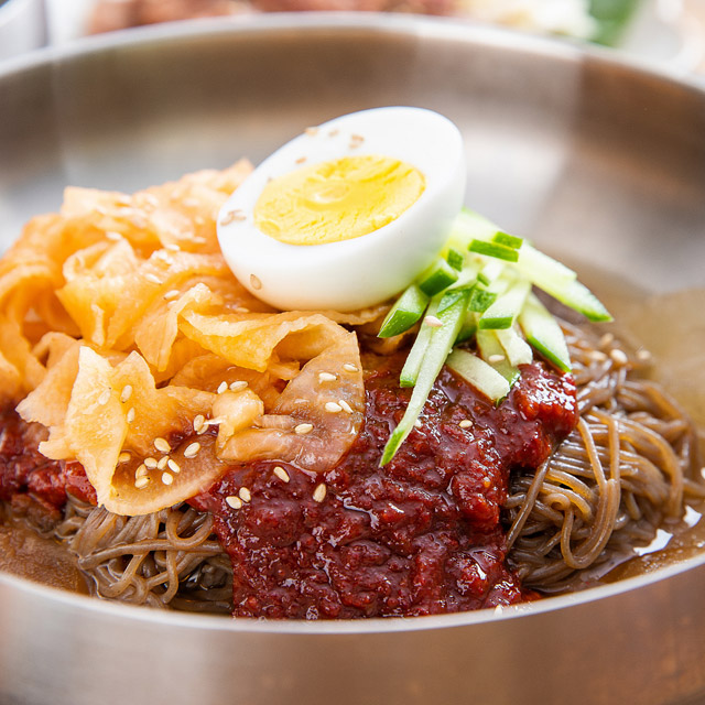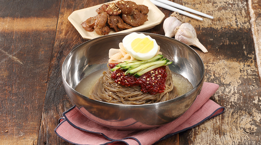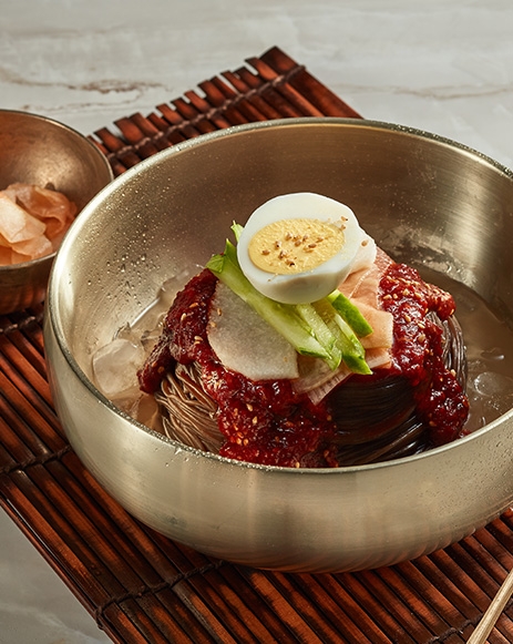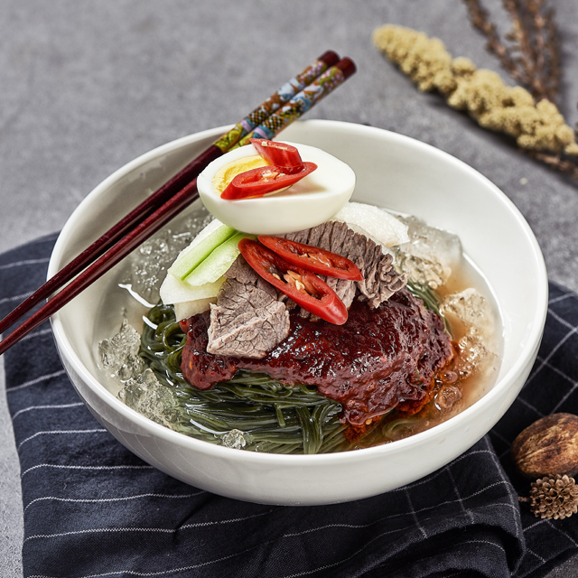 물냉면에 비빔냉면 양념장을 활용해 더욱 풍부한 맛을 느낄 수 있습니다. 물냉면의 깔끔한 맛과 양념장의 매콤함이 어우러져 환상적인 조화를 이룹니다.